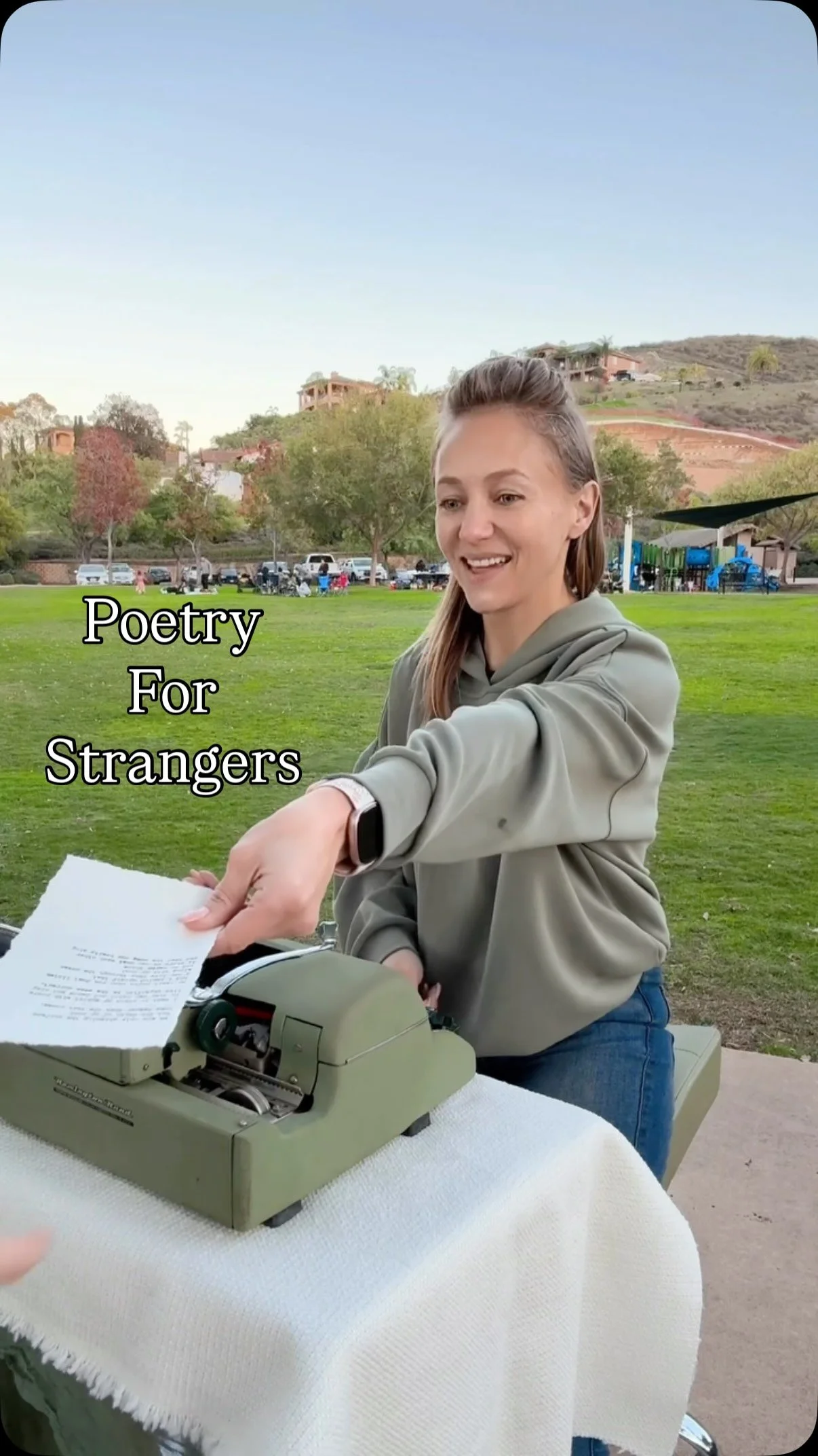Searching for “custom typewriter poetry for events” near you? Are you located in the San Diego, CA area? If so, then look no further! I LOVE crafting custom poems on the spot at events of all kinds, but especially weddings. I think it’s such a beautiful and unique way to commemorate the experience and provides guests with a gift they will treasure forever.